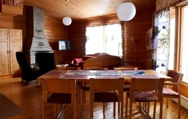 Cabin on the shore has beds for 8 people, three bedrooms downstairs and a sleeping loft with two beds upstairs. The cottage has two toilets, a sauna with washroom and own washing machine.